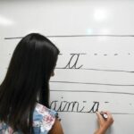 Evi and her classmates are learning the art of cursive writing, the old-school style of writing defined by flair and flourishes that are absent in block printing.