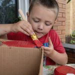 Cramer includes the children in making the items, from painting to gluing to asking for their input on what they want the scene to look like. He also creates a “how-to” for others who might want to enjoy the same experience with their little ones.