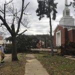 Gerry and Annette Devinney captured a tree as it was brought down by winds in Monroeville. The couple were relieved that the tree didn’t hit their new home, which they recently purchased after a driver ran into and demolished part of their home in Penn Hills.