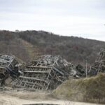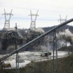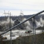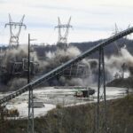 The larger and taller structures on the 236-acre site were already demolished this year by the company. Two concrete hyperbolic cooling towers — 500 and 550 feet tall — were imploded June 8. Three emissions stacks — two 700 feet tall and one 540 feet tall — came down March 4.