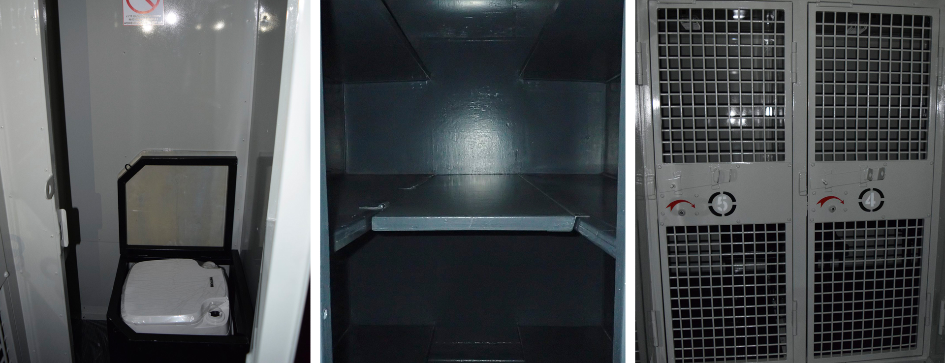 With four bunks on each wall, prisoners have only about 6 inches of space above them. The cars lack windows and are often too confined to allow a person to stand.