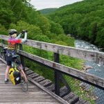 Sandy Earle, 73, from Washington state bicycled on the Great Allegheny Passage through Ohiopyle last week on a trip from Pittsburgh to Washington, D.C. John Davis of Scott Township, near Pittsburgh, was on a much shorter route — 9 miles from Confluence to Ohiopyle and back. He regularly stays at Hanna House Bed & Breakfast in Confluence to get exercise and a respite from city life. Davis has been visiting the area for about 20 years.