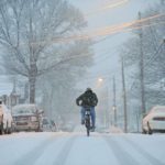And snow it begins … Chris Coleman, 15, of Greensburg bicycles down a snow-covered Harrison Avenue, only a little over two hours into the snowfall, on Friday, Feb. 5, 2010 in Greensburg.