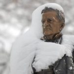 The statue of John B. Ford in Ford City Park is covered in snow on Saturday, Feb. 6, 2010, as a result of winds blowing from the north during this weekend’s blizzard.