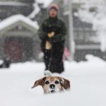 John Engberg follows as his beagle Scout makes her way through the snow blanketing West Park on the North Side on Saturday, Feb. 6, 2010. The National Weather Service was calling for the storm to dump 12 to 18 inches of snow in the area.