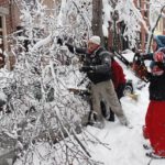 Nikki Navta wields a chainsaw as she and Gary Lilly cut a fallen tree branch away from a neighbor’s car on Resaca Place in the Mexican War Streets on Pittsburgh’s North Side on Saturday, Feb. 6, 2010.