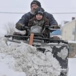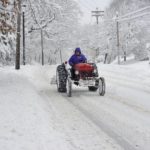 A man rides his tractor down Hulton Road in Oakmont on Saturday, Feb. 6, 2010. Many found travel nearly impossible after yesterday’s record winter storm that blanketed the region in snow.