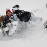 Getting outside of their dorm rooms, Emily Dempsey, Jenny Dempsey, Nicole Linsenbigler and Michelle Wilson play in the snow on the campus of the University of Pittsburgh at Greensburg on Saturday, Feb. 6, 2010.