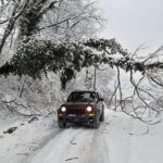 Down tree branches and power lines rest on a vehicle along Green Street in South Connellsville on Saturday, Feb. 6, 2010.