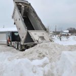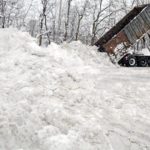 A Greensburg Parks and Recreation dump truck drops off another load of snow from the downtown streets on Tuesday, Feb. 9, 2010. The city dumped much of its overflow snow at Lynch Field.