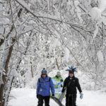 Willy Funk of Washington Township, his daughter Natalie of Philadelphia, and son Nick of Delmont cross-country ski along Route 381 on their way to Bulls Tavern from their family cabin on Old Linn Run Road in Rector on Saturday, Feb. 6, 2010.