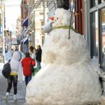 A 10-foot snowman stands along Carson Street on the South Side on Monday, Feb. 8, 2010. Paul Stubbs, a body-piercer at the business, had alot of help in constructing the frozen creation.