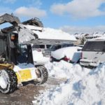 Magee Avenue parking lot fills as city and contractor trucks dump overflow snow from the post storm cleanup effort in Jeannette on Tuesday, Feb. 9, 2010.