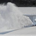 Winds whip the snow as Ray Reamer uses a small tractor to blow the snow on his farm on Ekastown Road in Buffalo Township on Monday, Feb. 8, 2010.
