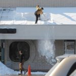 Workers clear snow off the roof of the McIntyre Square Giant Eagle on Monday, Feb. 8, 2010 in McCandless.