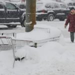 With shopping carts buried in the snow, Holly Parker heads toward her home in Tarentum with groceries from the Giant Eagle in New Kensington on Wednesday, Feb. 10, 2010.