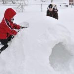 Billy Bentz, 7, and his cousin Abbi James, 7, work on a snow igloo they built in Bentz’s parents’ yard in Mt. Pleasant on Wednesday, Feb. 10, 2010.