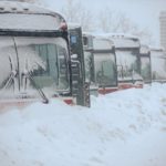 A line of Port Authority buses sit buried in the snow at the PAT garage in Ross on Wednesday, Feb. 10, 2010, after the second round of winter storms hit the region overnight.