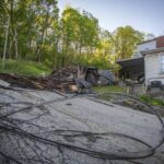 “I can’t do nothing. It’s wrapped around it,” Kuhn said as cars passed, careful to drive slowly across a cable wire from Kuhn’s house that lay in the road.
