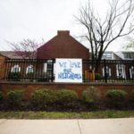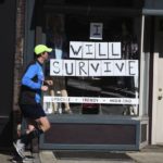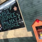Some pandemic advice and a selection of books grace the facade of a home along Monterey Street in the Mexican War Streets district of Pittsburgh, April 12.