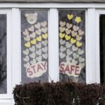 Homemade window decorations offer a message to stay safe Tuesday, April 14, along Surrey Drive in Hampton.