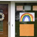 Homemade window decorations offer a message to stay safe Tuesday, April 14, in the Tall Timber neighborhood of Hampton.