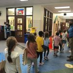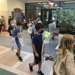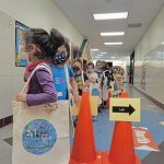 Seven classes participated in the parade, walking in a circle around the school’s lobby area as teachers waved and cheered while music played in the background.