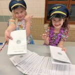 They turned in their stamped passport for a goodie box filled with snacks and a globe.