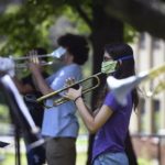 Band camp for Quaker Valley High School looks a bit different this year due to the coronavirus pandemic. During week one, which was preliminary rehearsals, the camp was divided into five sessions of around 10 students each so they could practice social distancing. Band members who couldn’t wear masks were required to cover the fronts of their instruments to contain aerosols. Tribune-Review Kristina Serafini snapped these shots on Aug. 7.