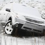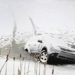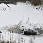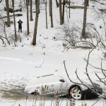 The rear end of the 2010 Subaru SUV became partially submerged when one of the vehicle’s wheels broke through the ice. The driver was out of the vehicle when first responders arrived, according to police.