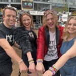 Swifties and newly made friends Doug and Celeste Lisko of Columbus and Nick Pulinski and Rachel Jennetti of Buffalo exchange friendship bracelets Friday morning outside Acrisure Stadium.@TribLIVE pic.twitter.com/OHJiEJeKwx
