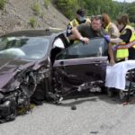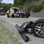 The impact destroyed the left front fender of Maruski’s car, tearing the wheel and suspension off, photographs from the scene showed.