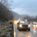 The single-lane closure is in place between the Harmar (Exit 11) and RIDC Drive (Exit 10) interchanges after two large boulders fell from the hillside onto the shoulder of the road.