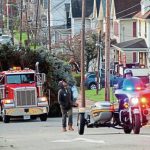 A crew from the City of Pittsburgh Forestry Division was on the campus of the former St. Alphonsus Church on Saturday morning to cut down a 40-foot blue spruce planted in an area where the church’s rectory burned down.