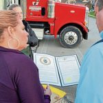Guardian Angels Parish business manager Thomas Babinsack received a ceremonial deed of transfer from Pittsburgh city forester Lisa Ceoffe recognizing the selection of the tree as the official Christmas tree for the City of Pittsburgh.