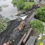 Of the nine cars in the creek, four are oil tankers while the other five are “buffer” cars used for safety.