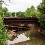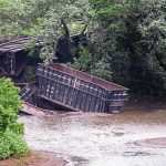 Authorities said 17 cars derailed. Allegheny County officials updated earlier numbers late Thursday to say nine of them went off a railroad bridge and into Guys Run. The spot is near the Allegheny Valley Joint Sewage Authority treatment plant, where the construction truck was headed, just upriver from the Hulton Bridge.
