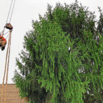 Crews with Beaverjack Tree Service cut the 40-foot Norway spruce down Friday morning. It was taken on a flatbed to the grounds at Our Lady of the Most Blessed Sacrament at Broadview Boulevard and Montana Avenue.