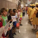 At each building, staff and students lined the halls, gave high-fives and shouted congratulations.