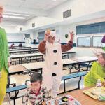 Leechburg Area School District employees and administrators dressed up as holiday characters Wednesday to serve a Christmas-themed lunch to students.