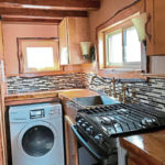 The new home has 224 square feet of interior space. It’s built on a B-V trailer and is move-in ready, as it includes electricity, a washer/dryer unit, shower, two holding tanks including a 26-gallon freshwater tank, and custom tongue-in-groove knotty pine. It comes with a generator.