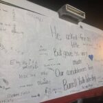 A sign that read “He asked for so little, but gave so very much,” signed by Burrell youth wrestlers, was placed on the front of a firetruck. Others in the crowd also signed it.