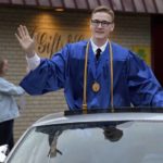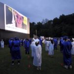 The parade route wound through several Leechburg streets before the seniors headed to Riverside Drive-In Parks Township, where commencement was held, with social distancing observed. Photos of the seniors were projected on the drive-in’s big screen.