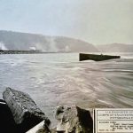 The Army Corps of Engineers sent the steamer Pennova, the first boat to ascend the Allegheny River after the flood, to Braeburn with two barges of rock to try to fill the gaping hole at the end of the dam.