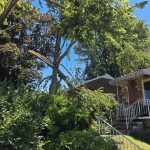Back on Russell Drive, Kat Bercel was taking a break from yard work Thursday. She lives next door to Mohney, yet Bercel’s home sustained no damage other than a smashed fence. Still, her yard was littered with branches.