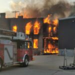 Firefighters battled the intense blaze for hours. Flames engulfed the building and shot into the sky.