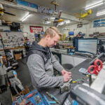 Cameron Suhadolnik, one of the owners of Tailspin Hobbies off Route 66 in Washington Township, has grown accustomed to the sound of cars crashing outside his window.