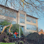 Harrison resident and former Riverview Elementary student Eric Schmitt, 50, stopped during a morning bike ride to watch the digging.