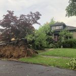 “I heard a crack and thought maybe a limb (had broken),” he said. “I was dumbfounded when the whole tree went. My nieces, nephews, grandkids, the neighbor, aunts and uncles, my son and daughter are here (helping). You should have seen the look on my face when that tree fell over.”