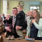 The church, which counts about 350 families as its members, had its celebratory reopening service Sunday, led by Bishop Larry J. Kulick of the Diocese of Greensburg. The Rev. Chris Pujol served as the bishop’s master of ceremonies during the Mass and assisted during the blessing of the church.